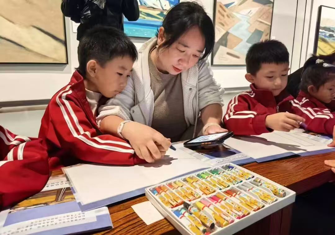 在互动体验区,孩子们围坐在画桌旁,用彩笔临摹心仪的作品——有人专注描摹人物神情,有人细心调出那一抹“青海蓝”。“这次活动特别有意义,既动脑又动手,让孩子们在感受艺术的过程中学会了欣赏和表达。”西宁市体育实验中学团委书记崔苗苗说。