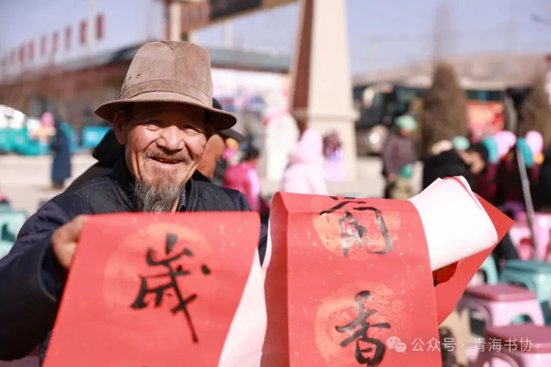 连日来,由省书协主席团成员带领的一支支书法家志愿服务小分队携纸带墨,深入城乡各处。在海东平安区的村庄,红纸铺开,翰墨落笔,一副副春联映亮冬日;在黄南州的银行与老干部活动中心,墨香与笑语交融,传统年味浸润现代生活;在校园里,富有马年寓意的联句被郑重写下,将文化种子播撒于青春心田;在青稞酒股份有限公司,墨香与酒香交织,书法家们将吉祥的祝福写进传统工艺的坚守者心间;在西宁市第三人民医院,红纸福字映照着白衣身影,为医护人员带去一份温馨的年节问候;在水利局、社区、乡村振兴示范村……处处可见手捧墨迹未干春联的笑脸,红纸金字间流淌着朴素而真挚的新春祝愿。