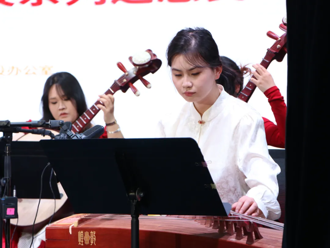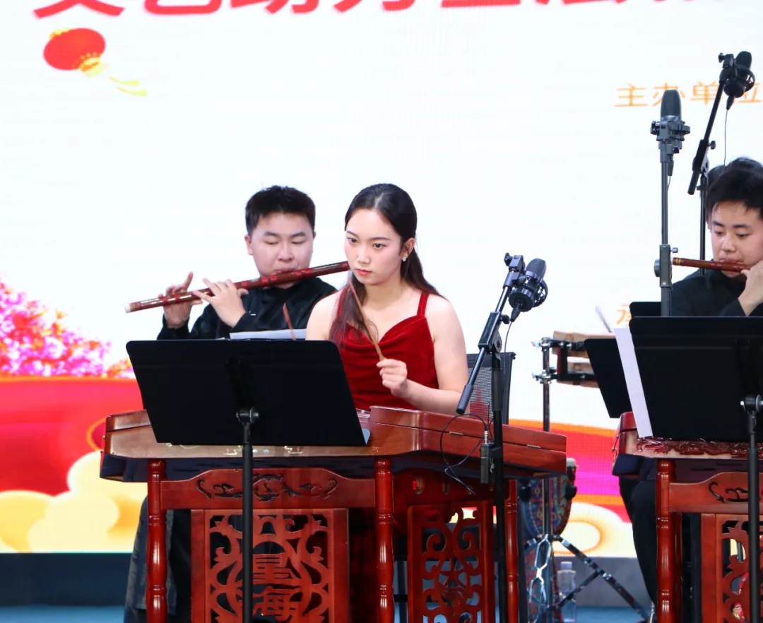 演出在热烈欢快的器乐合奏《金蛇狂舞》中拉开帷幕。随后,《喜洋洋》的轻快音符跳跃而出,笛子独奏《牧民新歌》把观众带向了广袤草原。整场演出中,既有《赛马》中二胡齐奏的奔腾豪迈,也有《跑旱船》中笛子重奏的诙谐灵动;既有《红旗颂》《我爱你中国》这样的主旋律经典,也有《花儿与少年》《花好月圆》这样的传统民乐精华;既有表现家乡眷恋与母爱感恩交织的《我的家在祁连山下》《最美的歌儿献给妈妈》,也有表达家庭和睦愿景与呈现香巴拉神秘之美的《家和万事兴》与《走进香巴拉》。而《敦煌新语》将千年古城的故事娓娓道来,《扬鞭催马运粮忙》则带领观众感受农民运粮忙碌景象,器乐合奏《红歌/军歌联奏》让红色经典旋律回荡,革命精神激荡人心,现场观众爱国情怀油然而生。在全场合唱《我和我的祖国》声中,整场演出画下圆满句号。